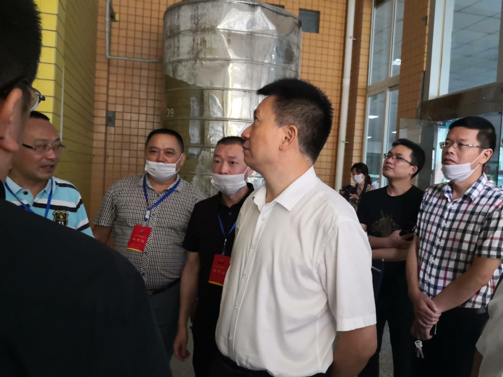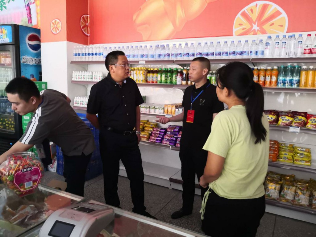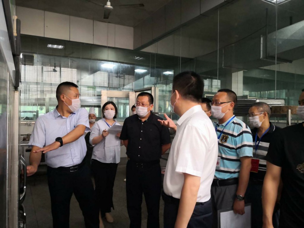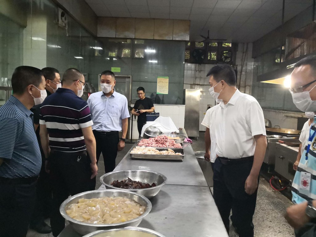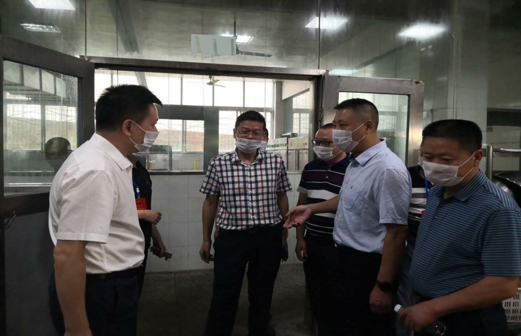 2019年9月4日,市市管局和市教体局联合检查组在市市管局肖局长、龙局长和市教体局蔡局长的带领下,来校进行食品安全专项检查。县市管局李天乾局长、县教体局李浪副局长、学校李隆全校长陪同检查。