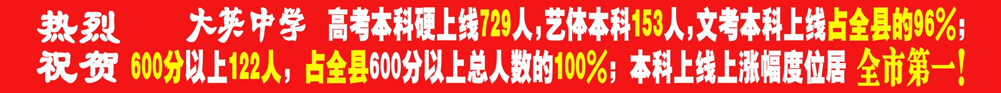 ● 朱星同学以687分的成绩获大英县理科状元,靳芮茜同学以604分的成绩获大英县文科状元。