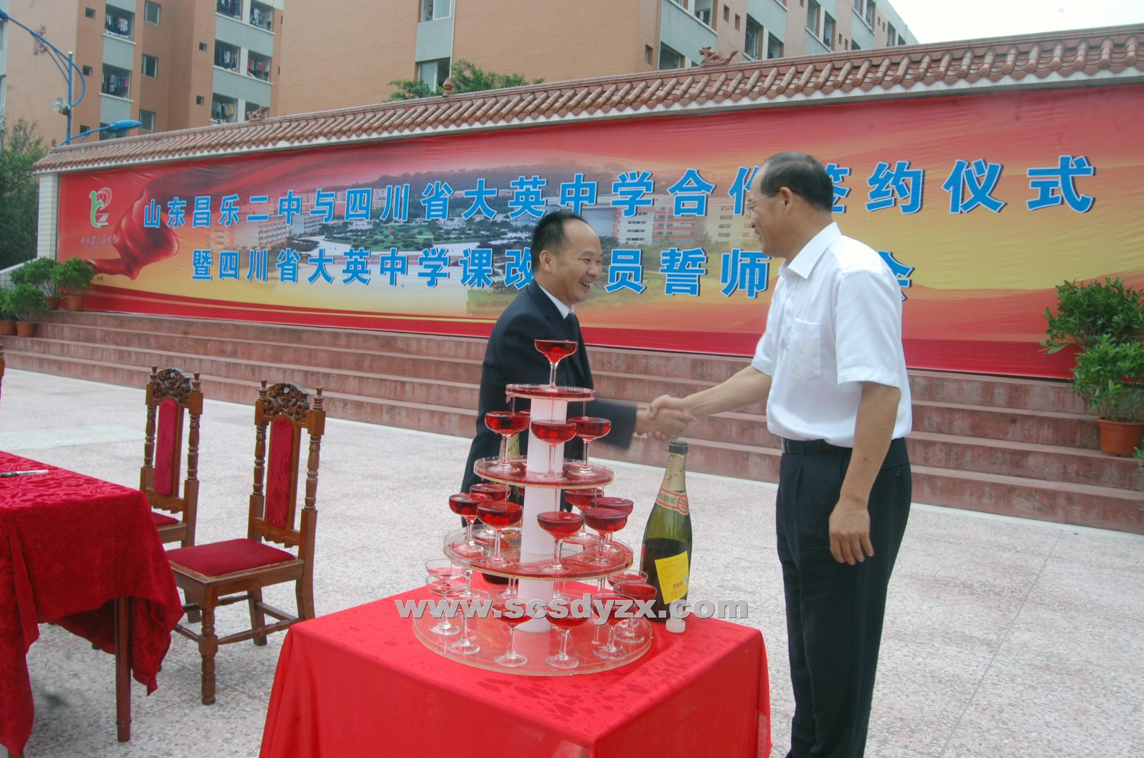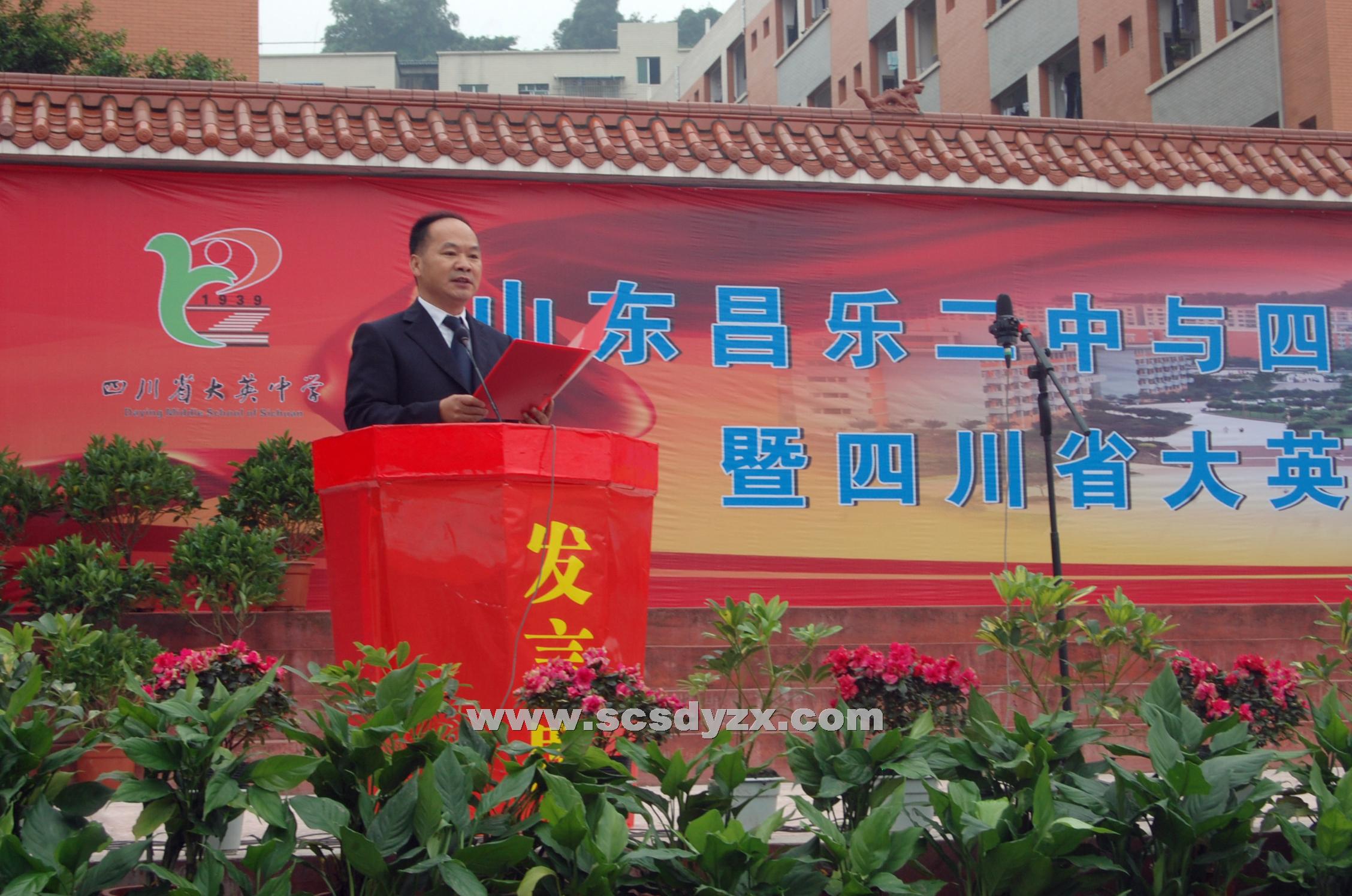山东昌乐二中校长赵丰平发表了热情洋溢的讲话,对大英中学全校师生寄予了殷切希望。