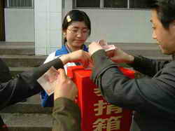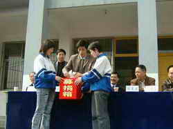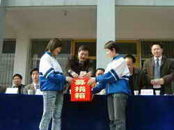 县教育局副局长任常荣同志为徐麟宝同学捐款